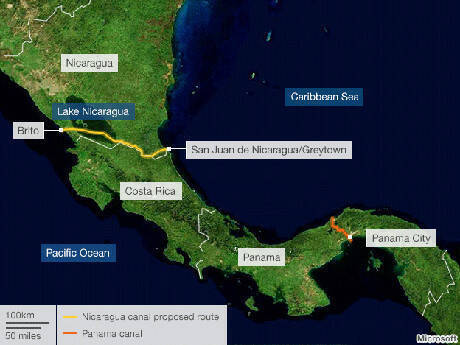 China a propus Nicaraguei un mega proiect privind construirea unei mega infrastructuri de transport incluzând transport maritim, un gazoduct şi un petroduct. Parametrii proiectului chinezesc îi depăşesc pe cei ai centenarului Canal Panama – fiind proiectat a avea 22 metri adâncime, 20 de metri lărgime, şi 286 de kilometri lungime.