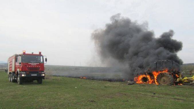 Bărbat carbonizat după ce tractorul în care se afla s-a răsturnat și a luat foc