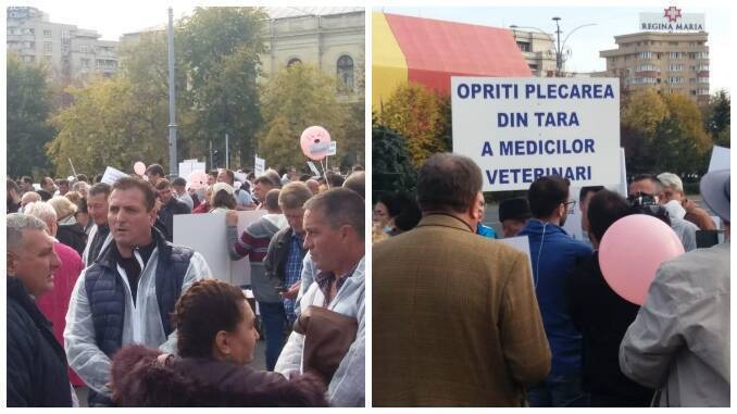 Pentru a doua oară deja în acest an, medicii veterinari concesionari au ieșit în stradă. La fel ca și la primul protest, cel din 26 martie, acțiunea a fost ”concentrată” în prima parte în fața ANSVSA, apoi, la prânz, veterinarii din toată țara au extins în forță mitingul și în fața Guvernului.