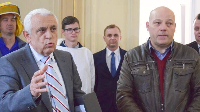 Apicultorii nu au apucat însă să picheteze prea mult timp în fața MADR întrucât au fost invitați înăuntru, unde au fost întâmpinați chiar de ministrul agriculturii Petre Dae. În ciuda programului foarte încărcat din aceste zile cauzat de fenomenele meteo extreme care au distrus mai multe ferme în țară, ministrul Daea și-a făcut timp să-i primească pe apicultori la discuții.