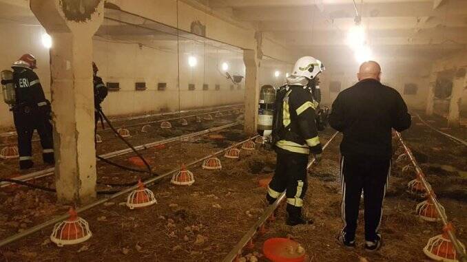 În incinta fermei ce a luat foc se aflau 31.000 de pui. Din cauza fumului şi temperaturii ridicate au pierit 16.000 de pui de o zi.