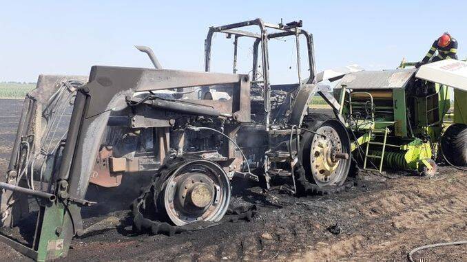 Incendiu în câmp! Un tractor și o presă de balotat, care aparţin unei societăţi din localitatea Ion Roată, din județul Ialomița, au fost cuprinse de flăcări în câmp, în timpul unor lucrări agricole.