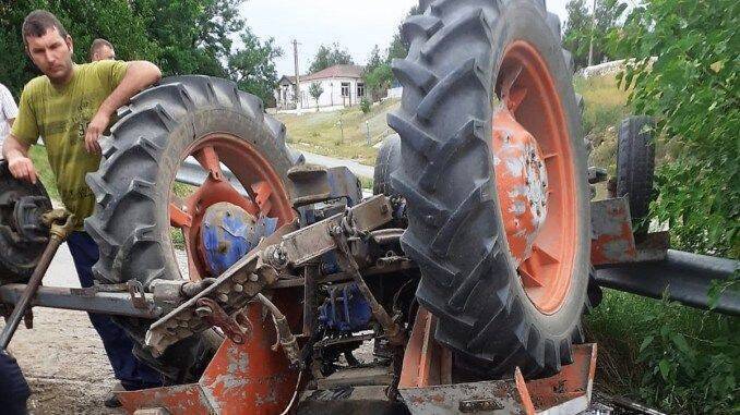 A scăpat ca prin urechile acului! Un bărbat a fost salvat după ce s-a răsturnat cu tractorul!