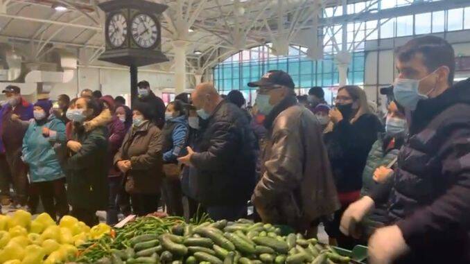 Într-o filmare care a apărut în presa locală, se poate observa cum tarabele stau goale, iar în interiorul pieței comercianții sunt într-un dialog surd cu administrația piețe. Pe scurt, ei cer să rămână să vândă în interior și să vină primarul să stea de vorbă cu ei.