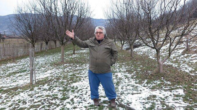 ”Livada mi-a fost distrusă parțial de conducta cunoscută sub denumirea generică BRUA (Bulgaria-România-Ungaria-Austria), pentru că s-au executat lucrări de interes național. Au venit cu conducta, dar cred că ei practic nici n-au știut pe unde vin, că în Baru mai este o conductă veche, pe care a fost transferată din sat pe dealul celălalt. Ei, când au venit să caute proprietarii, nici nu știau pe unde trece conducta. Cred că au desenat-o din birou, pe Google Maps. Mi-au tăiat 120 de pomi, au îngropat o conductă de 1 metru în diametru la 2 metri adâncime, au distrus terenul și l-au lăsat viran, plin de pietre și gropi de la șantier. Pe unde trece conducta, pomi fructiferi nu mai am voie să cultiv niciodată de acum înainte și nici 6 metri stânga și 6 metri dreapta de conductă. Pot să plantez doar cartof, porumb…. dar solul nu e curat. Trebuiau să redea terenul agriculturii încă din 2020, dar n-au făcut-o. Am primit o despăgubire pentru cultură convențională. Mi s-au oferit între 600 lei pentru un măr și 1700 lei pentru un gutui. Acum sunt în proces cu ei. Eu am solicitat o medie de .2500 lei per pom, fiindcă pomii tăiați provin dintr-o livadă certificată ecologic. Am înțeles că pentru stabilirea cuantumului despăgubirilor, direcțiile agricole din toate județele au transmis spre Transgaz valorile tuturor culturilor. Pentru pomi au estimat că despăgubirea trebuie să fie între 600 lei măr, 800 lei la păr, 900 lei la cireș și vișin, 1.300 lei la piersic și cais cred și 1.700 lei la gutui. Asta e o medie pe județ. Ei m-au despăgubit pentru convențional, în loc să ia în calcul că eu am de mulți ani cultură ecologică certificată bio de către Ecocert. În fiecare an plătesc o taxă, vine cineva, îmi ia probă de sol, de fruct și-mi dă certificare că producția e ecologică. Pomii fructiferi, porumbul, nutrețul, totul e ecologic la mine în fermă. Ei însă nu oferă despăgubiri diferențiate, căci nici nu există la nivel de județ o estimare privitoare la câte culturi certificate ecologic, fiindcă sunt foarte puține și nu există date. Acum mare problemă e, fiindcă eu sunt în proces cu ei, că nu există experți. E un singur expert pe pomicultură în tot județul pe pomicultură și acela e în vârstă. Problemele care sunt în România e că nu sunt specialiști care să calculeze valoarea unei astfel de culturi. Habar n-au. Sunt de pe altă planetă”, e furios pe situație Marcu Popescu, neînțelegând de ce lucrurile nu pot rezolvate gospodărește, așa cum a făcut el, când, în calitate de viceprimar, a băgat în comuna Baru gaz, apă și canalizare, creând toate condițiile de oraș într-o zonă superbă de munte, unde fructele sunt fructe, laptele e proaspăt, brânză a pură și unde cartoful nu se tratează cu insecticide.