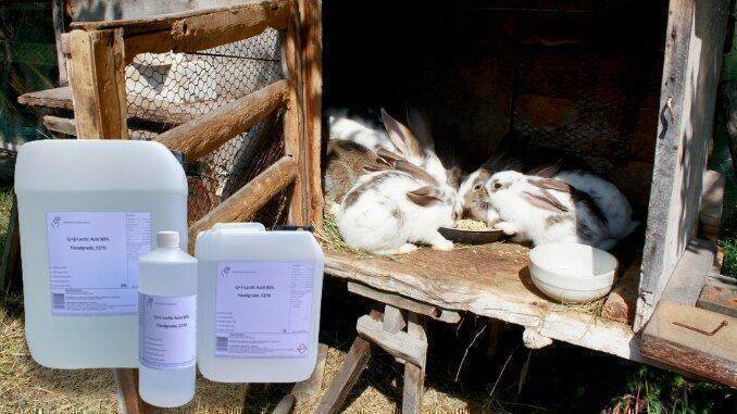 În timp ce mănâncă furaje, animalele pot suferi de balonare. Aceste probleme pot fi evitate în cazul în care iepurii li se administrează acid lactic. De obicei este adăugat în alimente sau în apă și are un efect benefic asupra stării generale: alimentele sunt digerate mai rapid și mai complet. Se stimulează digestia părților grosiere ale furajelor, iar energia vitală a animalelor crește.