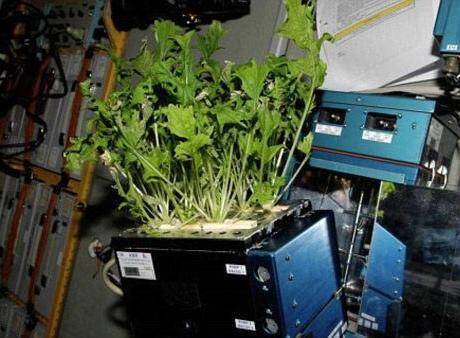 Salata japoneză, germenii de grâu și fasolea au fost primele plante care au crescut și au rodit în condițiile artificiale create în afara Terrei, iar analizele efectuate au arătat că producția este comestibilă, sigură pentru organismul uman.