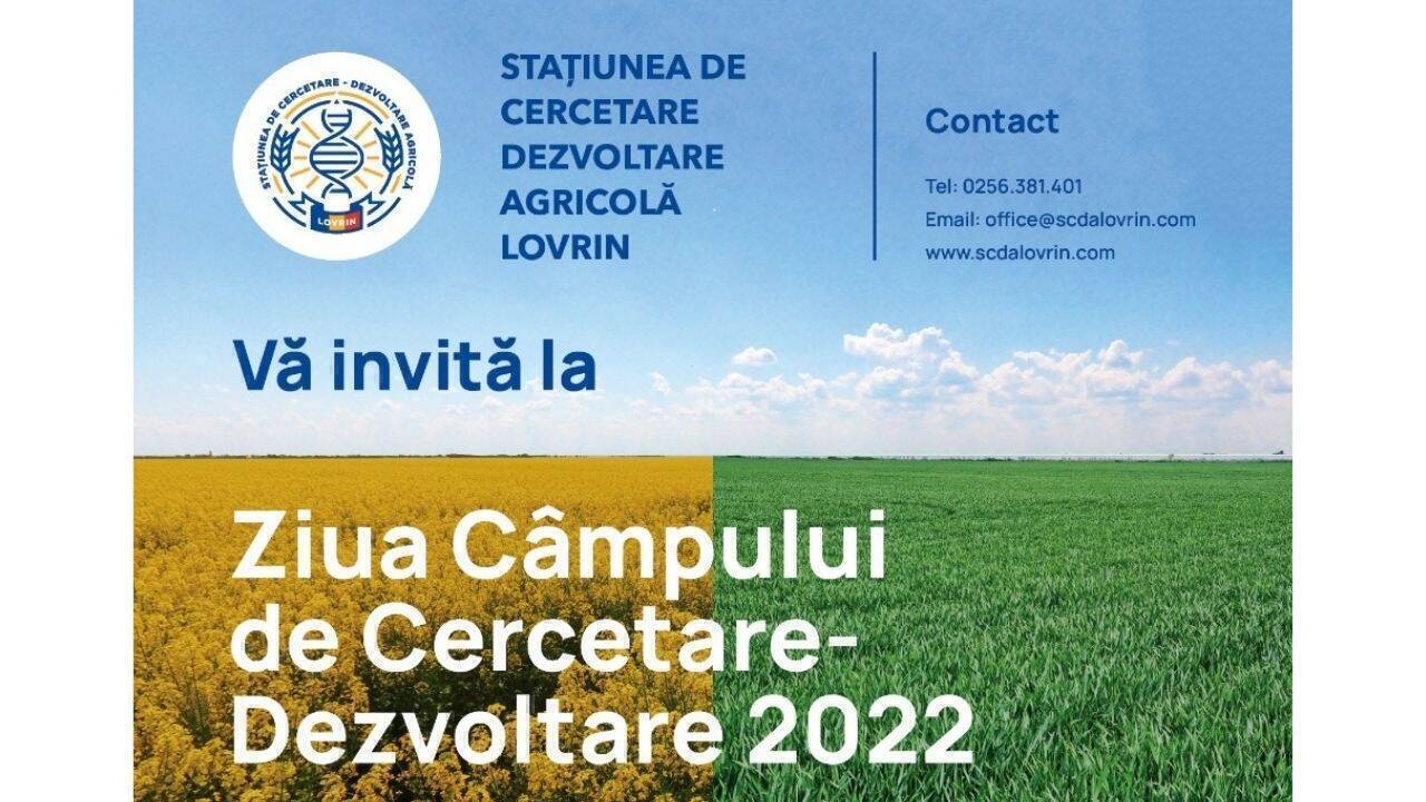 Ziua Câmpului de Cercetare-Dezvoltare 2022, eveniment ajuns la a VII-a ediție va avea loc vineri – 3 iunie la Stațiunea de Cercetare-Dezvoltare Agricolă (SCDA) Lovrin. Evenimentul urmează să reunească în fața ”spectacolului” geneticii și a tehnologiilor de cultură peste 400 de fermieri care vor afla direct de la specialiștii stațiunii de cercetare dar și de la firmele colaboratoare cum au evoluat soiurile de grâu și rapiță din loturile prezentate.