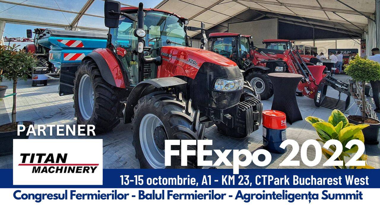 Fermierii care vor participa la Târgului FFExpo 2022 au ocazia să beneficieze de prețuri promoționale și tehnică agricolă de top oferite de compania Titan Machinery România, la Târgului FFExpo 2022.