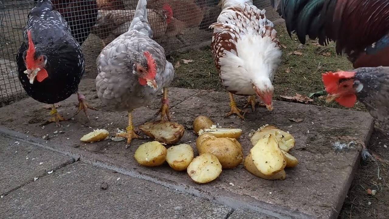 Se recomandă cartofi fierți la găini și pui. Ponderea cartofilor fierți în dieta zilnică a găinilor poate fi de 20%.