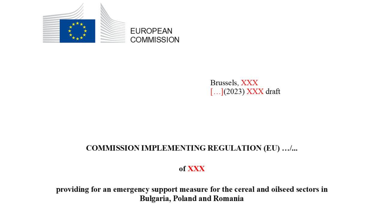 Un draft regulamentului, în forma sa ce urmează să fie oficializată prin semnătură, ne-a fost transmis, din surse conectate la nivelul Comisiei Europene. Conform documentului, redactat în limba engleză, ajutorul excepțional ce ar urma să fie acordat celor trei state membre – România, Bulgaria și Polonia va totaliza 56.300.000 de euro pentru ”a oferi sprijin excepțional fermierilor care produc cereale și semințe oleaginoase menționați în anexă, în condițiile prevăzute în prezentul regulament”.
