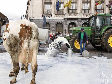 Situația critică din sectorul laptelui european clocotește chiar înainte ca Phil Hogan, noul comisar pentru agricultură să își ia în primire atribuțiile pe 1 noiembrie. Câteva zeci de fermieri britanici, proprietari de ferme de bovine, au protestat luni împotriva prețurilor prea mici la lapte.
