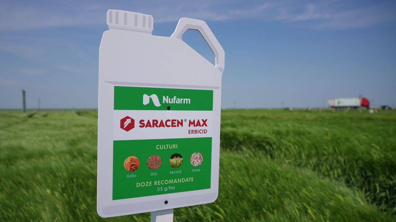 La cultura de grâu, una din soluțiile prezentate a fost Saracen Delta, un erbicid pe bază de diflufenican și florasulam, care combate buruienile dicotile încă din toamnă. Gabriel Nicolau, expertul tehnic al Nufarm, le-a explicat fermierilor prezenți la Drajna avantajele folosirii acestui produs.