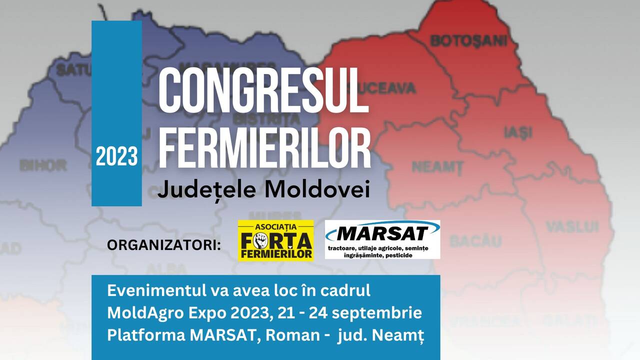 Asociația Forța Fermierilor, în parteneriat cu MARSAT SA Roman și cu Grupul Agrointeligența, anunță organizarea Congresului Fermierilor din zona Moldovei în cadrul celui mai important târg regional de agricultură din România și, totodată, singura expoziție de profil dedicate fermierilor din această zonă – Moldova Agricolă Expo!