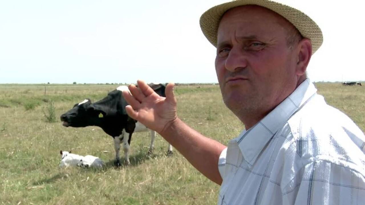 De câțiva ani seceta a pus stăpânile pe câmpiile din Bărăgan, însă, anul acesta este pentru prima oară când pășiunea s-a îngălbenit atât de repede. Smocurile de iarbă sunt foarte mici în această perioadă, iar ca să-și salveze vacile, fermierul este nevoit să le hrănească zilnic, aducând o remorcă de coceni pe pajiște.