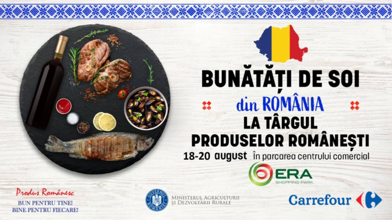 Ministerul Agriculturii și Dezvoltării Rurale (MADR), în parteneriat cu Carrefour România, va organiza, în perioada 18-20 august 2023, între orele 10:00-20:00, Târgul de produse românești „Bunătăți de soi din România”, în incinta centrului comercial Era Shopping Park Iași. Evenimentul face parte din campania de promovare a produselor agroalimentare românești și de creștere a accesului românilor la alimente de calitate obținute pe plan local, sub sloganul „Cumpără românește!”.