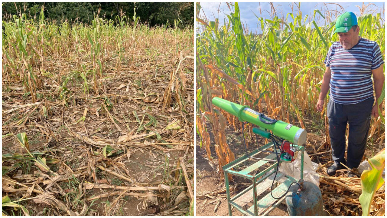 Un tun contra mistreților – care se poate folosi și în livezi sau în vie, l-a costat pe fermier câteva sute de lei. 800 de lei mai exact. Din păcate, nici măcar acest efort financiar și cel de alimentare a tunului nu au rezolvat problema, iar pagubele continuă să se adune.