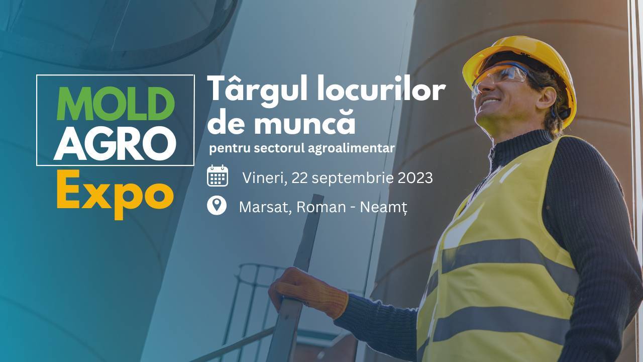 În cadrul Mold Agro Expo, în data de 22 septembrie va avea loc târgul al forței de muncă din sectorul agroalimentar, în care firmele din domeniu din zona Roman își vor prezenta oferta cu locurile de muncă vacante.