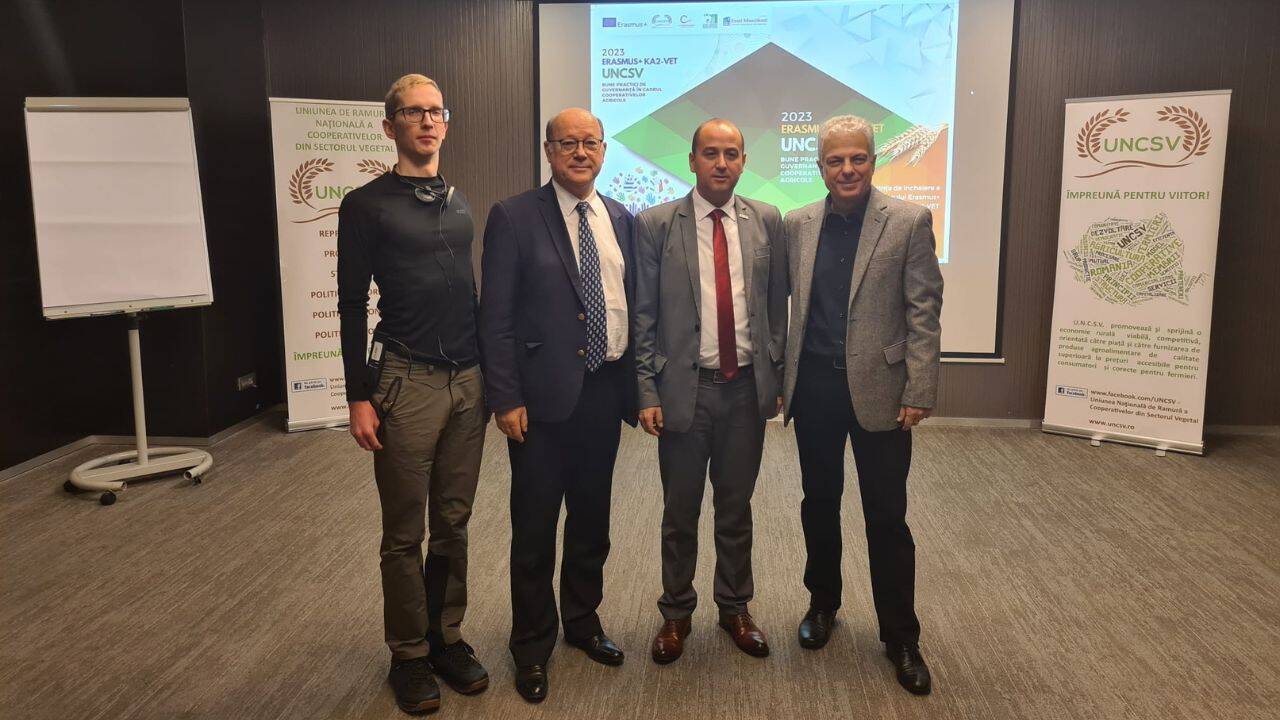 Uniunea de Ramură Națională a Cooperativelor din Sector Vegetal (UNCSV), a avut onoarea să găzduiască ieri, joi – 7 decembrie, conferința de încheiere a proiectului Erasmus+ ”Bune practici de guvernanță în cadrul cooperativelor agricole –GGPAC” (nr. 2021-1-RO01KA220-VET-000025577).