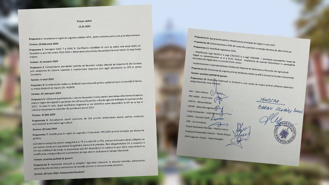 La finalul discuțiilor a fost semnat un protocol cu măsurile ce urmează să fie implementate în regim de urgență pentru sprijinirea fermierilor. Agrointeligența – AGROINTEL.RO vă prezintă, în premieră, conținutul acestui document: