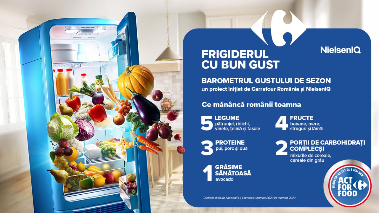 Analiza face parte din Frigiderul cu Bun Gust, o inițiativă parte din programul internațional Act for Food al Carrefour, ce propune recomandări nutriționale oferite de experți, pentru a sprijini tranziția către un stil de viață sănătos, bazat pe produse de calitate și cât mai accesibile. Iar pentru a începe acest proces de schimbare, este important să înțelegem realitatea de astăzi: ce se află în frigiderul românilor în fiecare sezon și cum se conturează obiceiurile lor de consum.