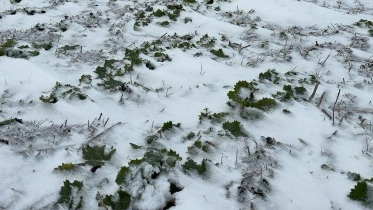 – Mucegaiul de zăpadă (Microdochium nivale): Riscul cel mai ridicat apare atunci când zăpada se depune pe un sol care nu a înghețat complet sau pe plante cu o masă foliară excesivă (rezultată dintr-o toamnă blândă). Sub stratul de zăpadă se creează un microclimat umed și întunecat, ideal pentru dezvoltarea mucegaiului de zăpadă, care poate distruge integral plantele de grâu și orz pe suprafețe extinse.
