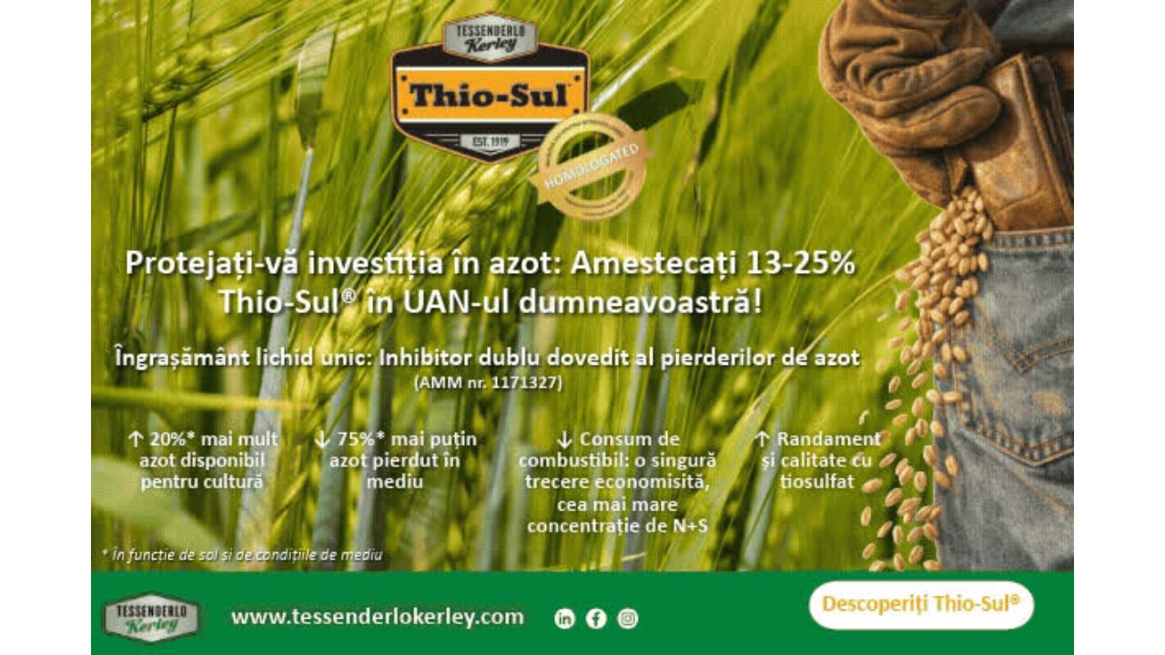 Tessenderlo Kerley anunță cu mândrie că își menține poziția de lider în inovarea agricolă cu Thio-Sul®, singurul produs pe bază de tiosulfat de amoniu (ATS) conceput și fabricat exclusiv pentru sectorul agricol. Tessenderlo Kerley este cel mai important producător mondial de ATS și se află într-o poziție unică pentru a furniza un produs care îndeplinește cele mai înalte standarde de puritate și performanță. Spre deosebire de alte produse ATS, care adesea au culoare galbenă și miros din cauza impurităților, Thio-Sul® este limpede, incolor și inodor.