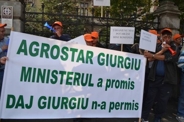 ”Înarmați” cu vuvuzele, cu fluiere, dar mai ales cu pancarde purtând mesaje puternice, protestatarii sunt toți membri ai filialei Giurgiu a Agrostar. În mare parte legumicultori, oamenii sunt nemulțumiți că nu și-au primit nici până astăzi despăgubirile pentru grindina ce le-a distrus recolta anul trecut. Ei spun că și anul acesta au avut aceeași problemă, tot fără nici o reacție concretă din partea Ministerului Agriculturii.