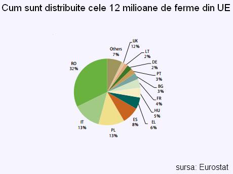 În anul 2010, în România existau circa 3,85 milioane de exploataţii agricole, care administrau 13,3 milioane de hectare, potrivit datelor Eurostat. Doar 0,2% din suprafaţă era cerificată în sistem ecologic.