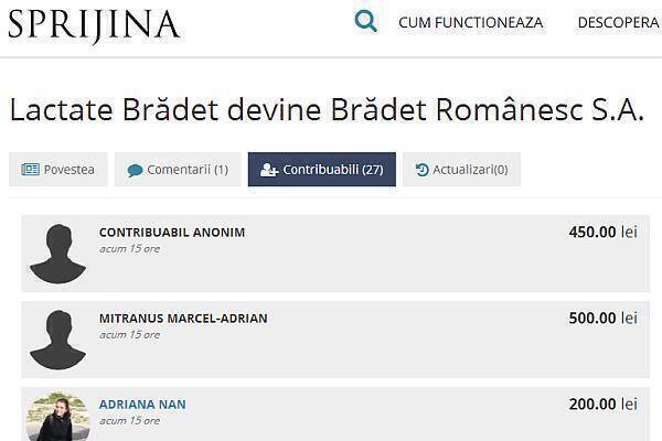 50 de persoane au ales până acum să susțină inițiativa unui brand de lactate românești care să fie creat de o comunitate de susținere mobilizată în mediul online. Pentru Brădet Românesc s-au strâns deja 6.650 de lei, iar Marius Badea, cel care a decis să își transforme afacerea din SRL în SA, și-a propus să strângă 10 milioane de lei în următoarele două luni.