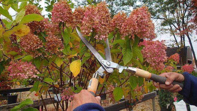 Odată ce florile au trecut și au căzut frunzele, trebuie să iei primele măsuri pentru pregătirea plantei. Curăță solul din jurul plantei de frunze uscate pentru a înlătura pericolul unei infestări cu ciuperci. Nu este indicat să tai florile, ci acestea trebuie lăsate să se usuce până vor cădea sau se îndepărtează în anul următor. În caz contrar, în următorul an hortensia nu mai înflorește.