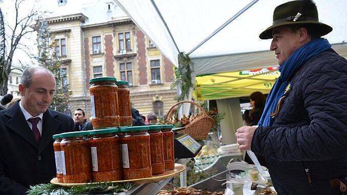 Brânza de burduf în coajă de brad, telemeaua de oi de la Vaideeni, telemeaua de oi cu ardei iute, salată tulceană cu icre de știucă, păstrăvul afumat în cobza de brad şi cârnaţii olteneşti vor fi, de asemenea, expuse de producătorii români care îşi doresc în viitorul apropiat să înregistreze aceste produse pe sistemele de calitate europene.
