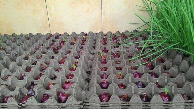 Cum se cultivă ceapa în cofraje de ouă