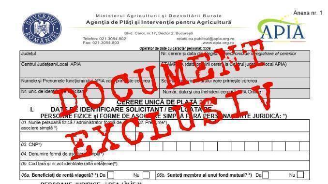 EXCLUSIV AGROINTELIGENȚA! Documentul pe care îl așteaptă toți fermierii a fost obținut de reporterii Agrointeligența – www.agrointel.ro. Este vorba despre cererea unică ce se depune la APIA în acest an și la care, în premieră, publicația noastră vă prezintă forma în care dumneavoastră, beneficiarii de subvenții, puteți vedea exact care sunt modificările ce au fost aduse pentru fiecare schemă de plăți directe aferente Campaniei 2017.