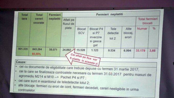 ”Aflați pe fluxul de plată, aceste operațiuni se realizează. Sunt 24.892 de beneficiari. Aceștia, până diseară și în cursul zilei de mâine vor intra în flux operațional rămânând, după cum spuneam, că la 31 martie posibil să rămână dosare care nu sunt complete, care nu pot fi procesate tehnic”, a declarat ministrul agriculturii. Acesta a arătat că numărul beneficiarilor de subvenții care au mai rămas să primească sume de la APIA este de 33.179 de fermieri.