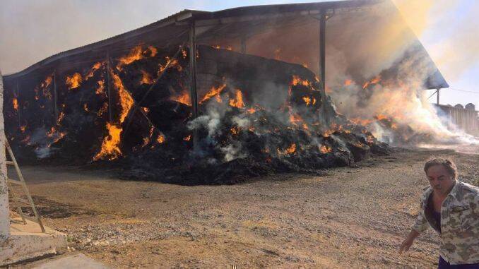 ”A ars un fânar. Paiele au ars, dar mai avem la Stamora (Stamora Română, localitate din județul Timiș – n.r.) o hală plină”, a fost prima declarație pe care am reușit să o obținem de la fermierul Ianko Zifceak despre pagubele incendiului de astăzi de la Gătaia.