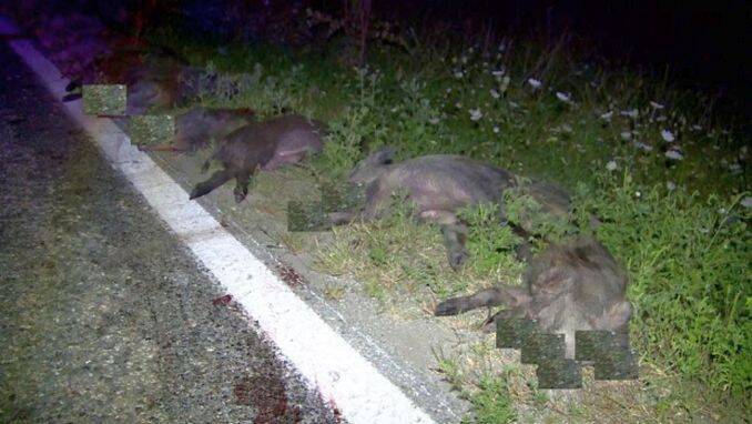 Accident mai puțin obișnuit aseară, în judeţul Gorj. Un șofer care se întorcea din Italia, acasă, la Târgu Jiu a omorât 33 de porci mistreţi care i-au ieşit în cale. Speriat, bărbatul a sunat imediat la 112.
