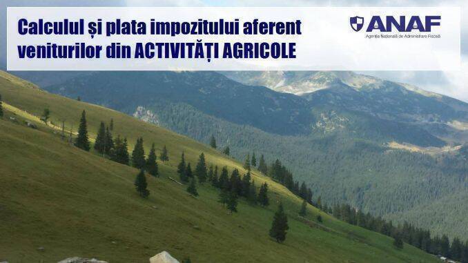 Anunț important pentru fermieri de la Agenția Națională de Administrare Fiscală (ANAF). Timp de o zi, specialiștii din domeniul fiscal stau online la dispoziția producătorilor agricoli pentru a răspunde întrebărilor și nelămuririlor pe care aceștia le au cu privire la calculul și plata impozitului aferent veniturilor din activități agricole!
