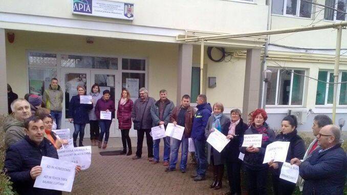 Funcționarii APIA, din nou în stradă! Pe o vreme câinoasă în cele mai multe județe ale țării, angajații agenției de plăți din teritoriu vor să tragă zilnic câte un semnal de alarmă până miercuri, 22 noiembrie, când a fost anunțat un protest național în fața Ministerului Agriculturii. Salariații sunt nemulțumiți pentru că noua lege a salarizării – cea care mută contribuția de la angajator la angajat, le va scădea lefurile semnificativ, începând cu 1 ianuarie 2018.