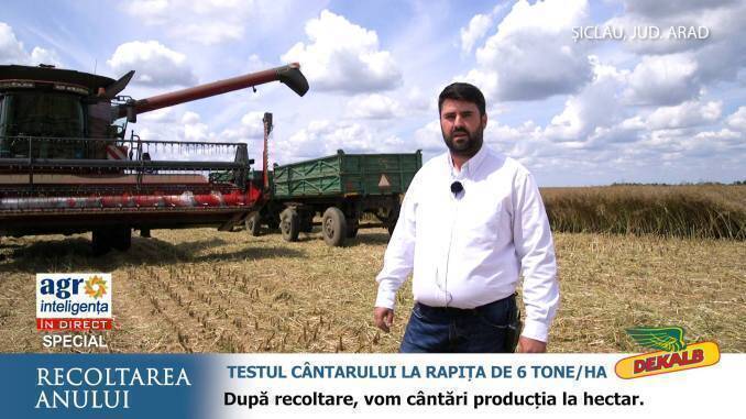 Agrointeligența – www.agrointel.ro vă aduce cel mai important eveniment al campaniei de recoltare a rapiței din România. În ferma Trei Movile din județul Arad, alături de echipa DEKALB, facem testul cântarului pentru hibridul DK Expression. Tințim o producție de șase tone la hectar, fermierul Valentin Rusmir fiind înscris în concursul DEKALB dedicat fermierilor care scot producții de peste 6 tone la hectarul cultivat cu rapiță de la Monsanto.