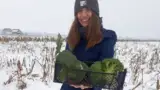 Profit din cultura de broccoli: O tânără culege recolta de sub zăpadă!
