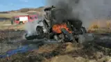 Tractor cuprins de flăcări în câmp! Utilajul a ars în totalitate!