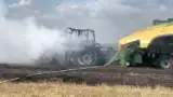 Tractor mistuit de flăcări în mijlocul câmpului. Focul s-a extins rapid și la vegetația din jur